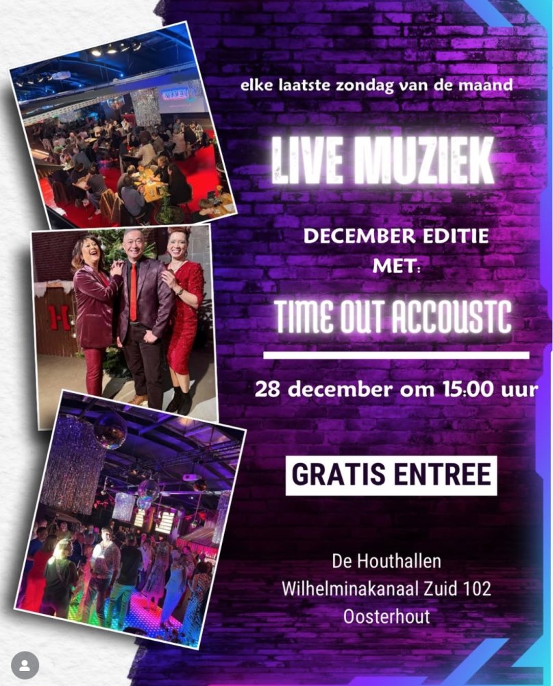 Ennn… de eerste editie wordt meteen een feestje! We trappen af met TIME OUT ACOUSTIC – een superenthousiaste, goede coverband die de mooiste kerstklassiekers, meezingers en fijne akoestische nummers speelt. ππΆ De perfecte mix om je zondag én het jaar gezellig af te sluiten.