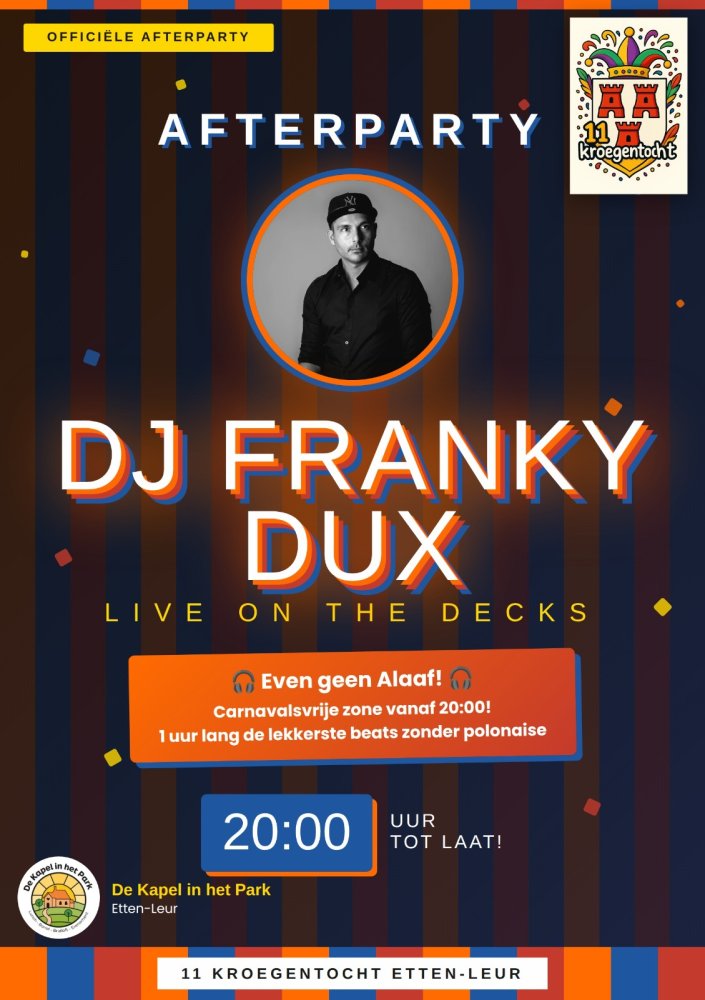 - Donderdag 12 februari: Vrouwkusbal met Die01608 en DJ Salty, vanaf 20.00 uur. Tickets>> - Vrijdag 13 februari: DJ Melvin, vanaf 20.00 uur. - Zaterdag 14 februari: In de middag 11 Kroegentocht met live muziek van Marco de Hollander om 15.30 uur en vanaf 20.00 uur Officiële 11 Kroegentocht Afterparty met DJ Franky Dux (tot 21.00). Vanaf 21.00 uur DJ Stefan met krakers van toen en nu. - Zondag 15 februari: Na de start van de optocht Net als toen met Het Karrekot Trio. - Maandag 16 februari: Vanaf 20.00 Après Ski party met dj Salty. - Dinsdag 17 februari: Carnavalsmiddag voor mensen met een beperking.