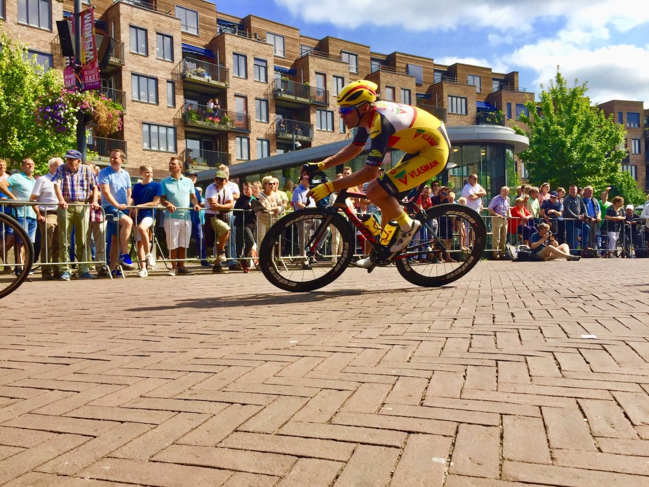 13.30 Tijdrit. Vanaf het podium op de Markt (!) vertrekken de renners voor 1,5 ronde.