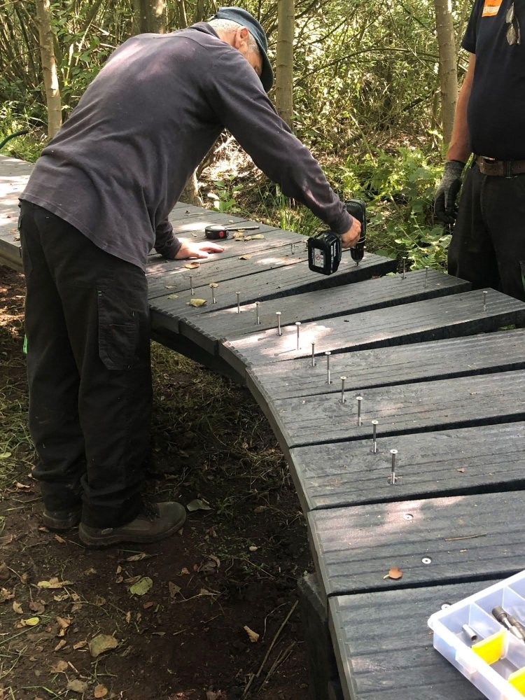 Vanaf 7 mei 2025 is er gedurende 13 ochtenden gewerkt aan nieuwe vlonders. 45 brugdelen van vier meter lengte, ondersteund door in totaal 172 staanders van 180x10x10 centimeter en rustend op 86 liggers zijn geplaatst om een door de natuur slingerend drogevoetenpad te maken. Zo’n 180 meter onder water staande delen van het Laarzenpad zijn zo beter begaanbaar gemaakt.
