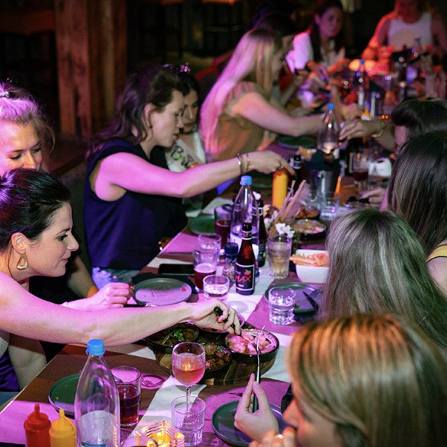 ‘Tapas aan Dek!’ is een restaurant waar jullie je als grote of kleine groep welkom voelen. De locatie, in ‘pirate beach’-themastijl, is helemaal ingesteld op groepen zoals vrijgezellenfeesten, verjaardagen of gewoon een leuk uitje met vrienden in Breda. Spontane polonaises, een verrassingsact aan tafel of een fout verzoeknummer? Bij ‘Tapas aan Dek!’ is alles mogelijk en welkom. Na het eten meteen de dansvloer op? Geen probleem, want het grootste feestcafé van Breda bevindt zich onder hetzelfde dak. De locatie is bovendien meerdere keren uitgeroepen tot ‘Beste Uitgaanslocatie van Nederland’!