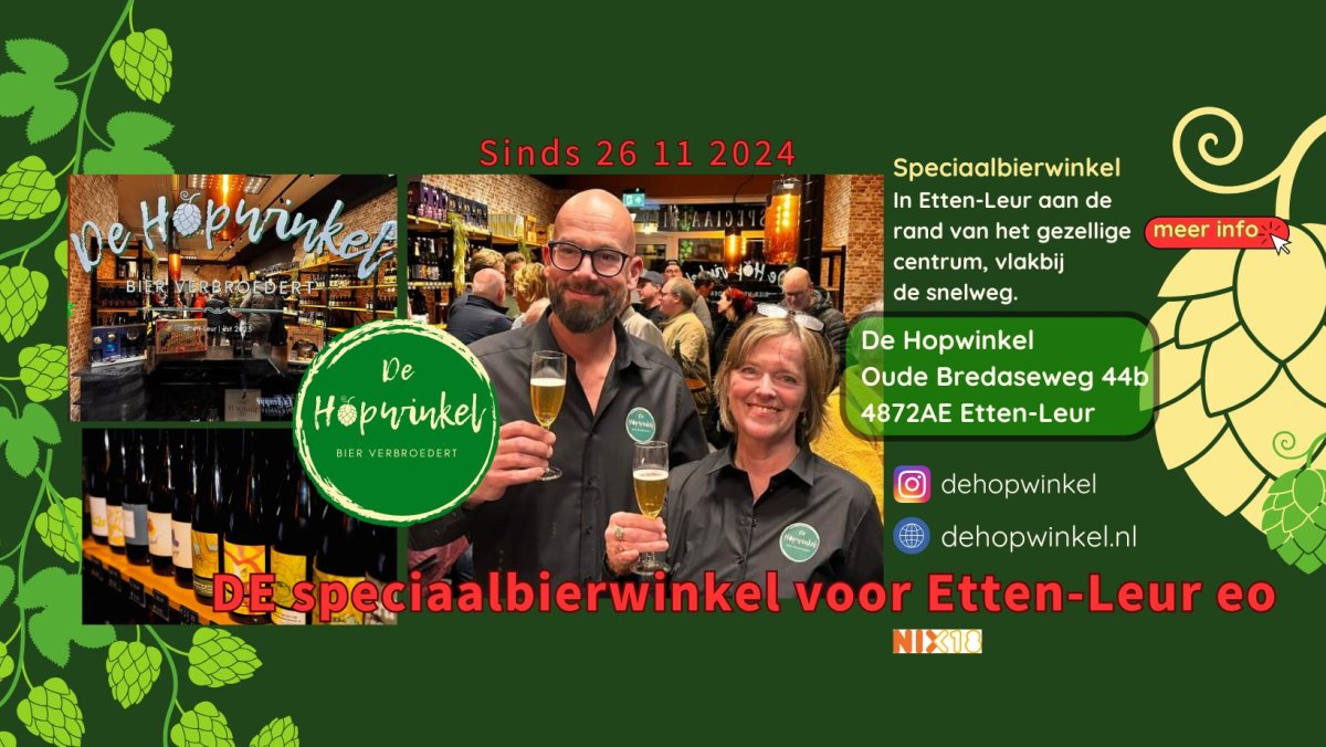 Een speciaalbierwinkel waar je je ogen uitkijkt opende op 26 november 2024 de deuren aan de Oude Bredaseweg 44b: de De Hopwinkel. Naast de webshop, is er nu ook de fysieke winkel, schuin tegenover Het Witte Paard. De winkel wordt gerund door Arnold Marijnissen en Petra Van de Laar.