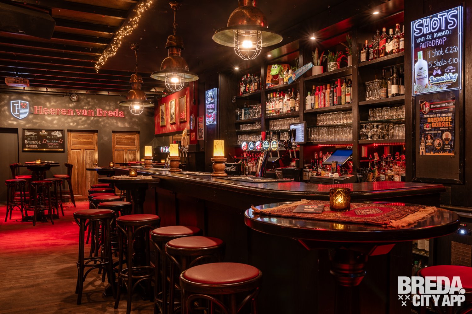 Heeren van Breda is een bijzonder sfeervol café met een breed aanbod voor jong en oud. Door de aankleding toont het café respect naar de stad Breda en haar historie. Voor bezoekers, zowel Bredanaars als toeristen, is het erg leuk om zo meer te leren over de stad. In de zomer biedt het café een prachtig terras met uitzicht op de Grote Markt en de Grote Kerk. Of je de dag nu vroeg begint met een koffie en een krant of laat eindigt met een lekker borreltje, bij de Heeren van Breda ben je altijd welkom.