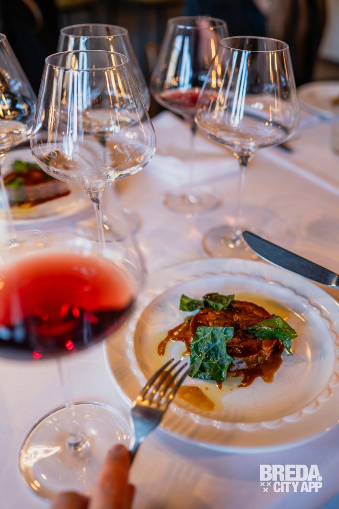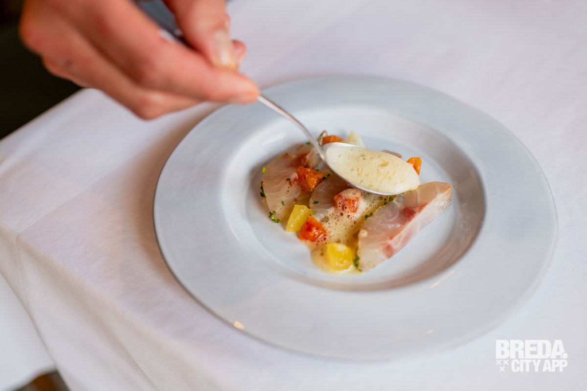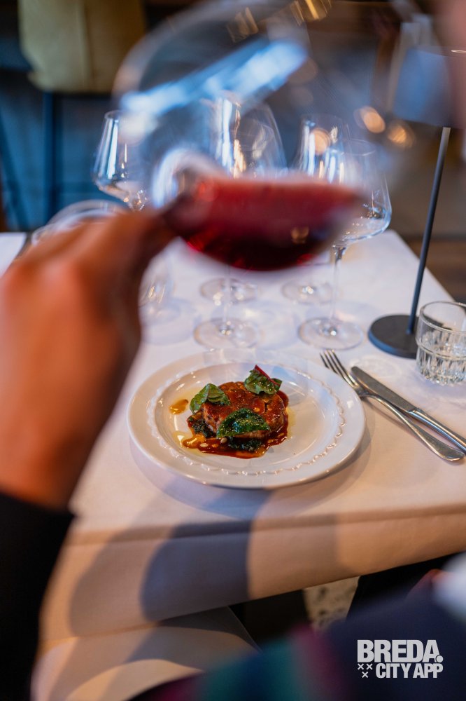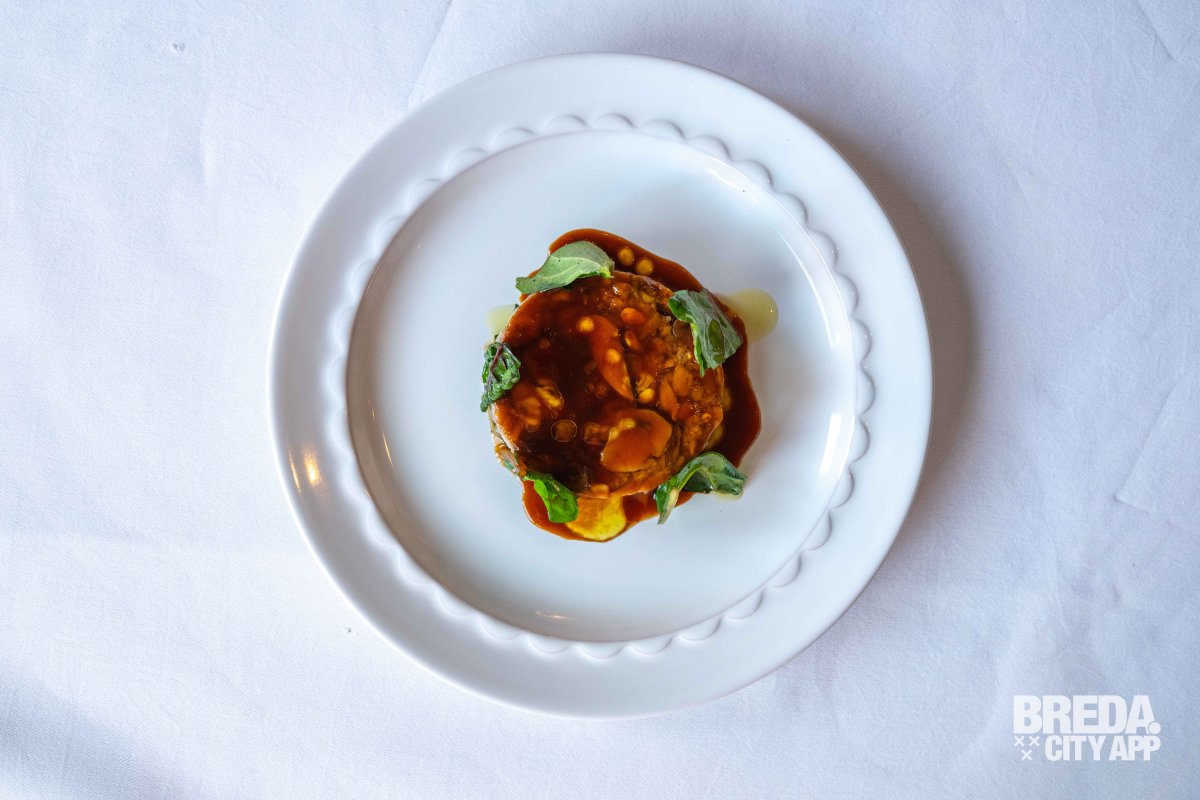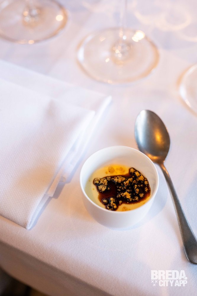 Zacht en romig van textuur, met de rijke, hartige smaak van de beroemde Italiaanse kaas. De flan smelt op je tong en de krokante toevoeging geeft een speelse crunch aan het gerecht. Een mooie start van de avond.