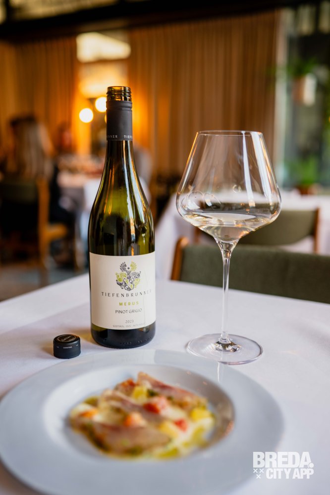 De Pinot Grigio ‘Merus’ van wijnhuis Tiefenbrunner is een elegante witte wijn uit Alto Adige, Italië. Deze Pinot Grigio is veelzijdig inzetbaar en past perfect bij deze gepekelde zeebaars. De levendige citrusaroma’s van de wijn versterken de frisheid van de gepekelde vis en de Siciliaanse citrus, terwijl de tonen van peer en perzik mooi samengaan met de zachte, anijsachtige smaak van venkel.