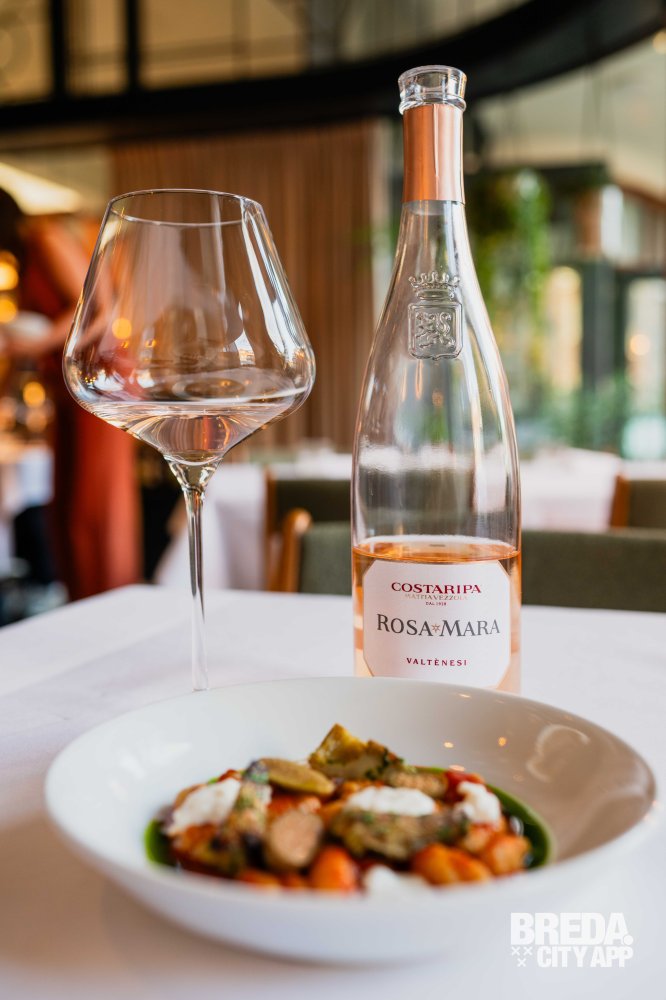 De Valtènesi Rosé DOC ‘RosaMara’ van Costaripa is een verfijnde rosé uit Lombardije, gemaakt van Groppello, Marzemino, Sangiovese en Barbera. Hij heeft een delicate roze kleur en aroma’s van meidoorn, zure kers en granaatappel. De smaak is zacht en fruitig, met een subtiel bittertje en een vleugje vanille.De frisse zuren en fruitige tonen van RosaMara balanceren de romigheid van burrata en de zoetheid van tomaat.