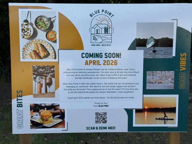 Dit is slechts een eerste stap in een bredere gebiedsvisie voor de Galderse Meren. Naast Blue Point komen er nog dit jaar verplaatsbare, toegankelijke toiletgebouwtjes met douches en waterpunten bij het strand én het naaktstrand. Deze voorziening, met een investering van €290.000, is vooral bedoeld om ook mindervalide gasten comfortabel recreëren mogelijk te maken.