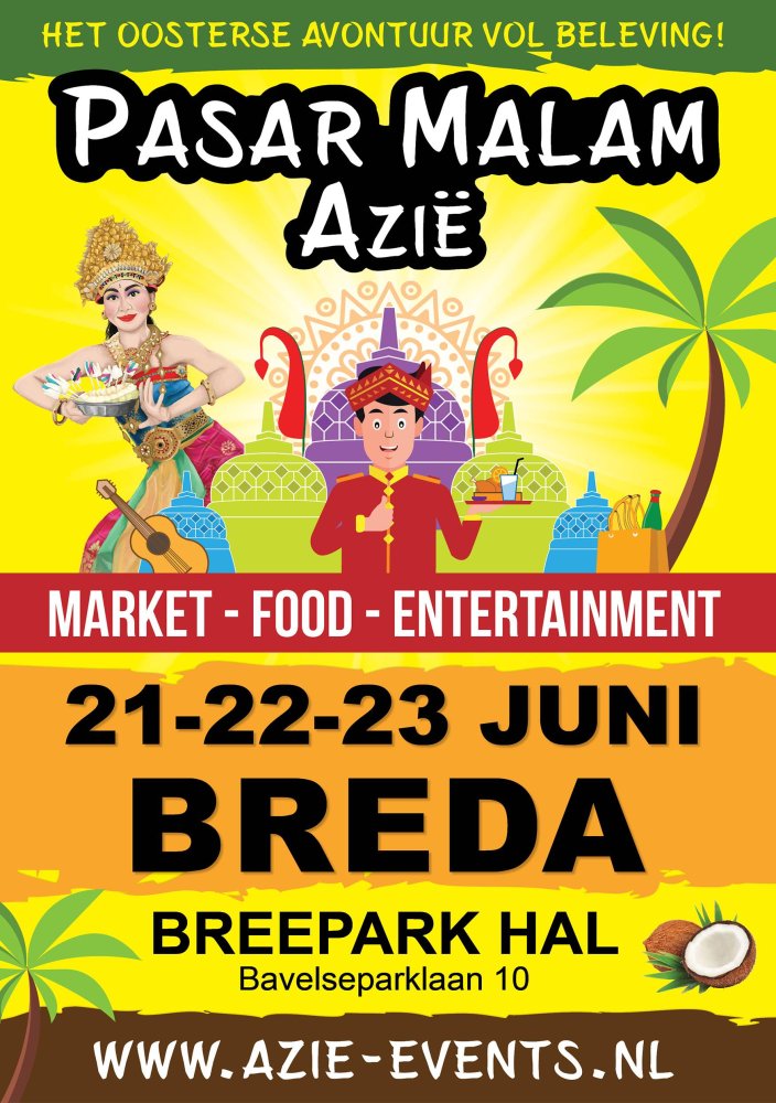 Azië is dichterbij dan je denkt! Breepark is dit jaar de gastheer voor Pasar Malam Azië. Dit kleurrijke 3-daagse evenement vol beleving is van 21 t/m 23 juni mee te maken in Breepark Breda. "Het mooiste oosterse festival voor een gezellige dag uit, iedereen is welkom!"