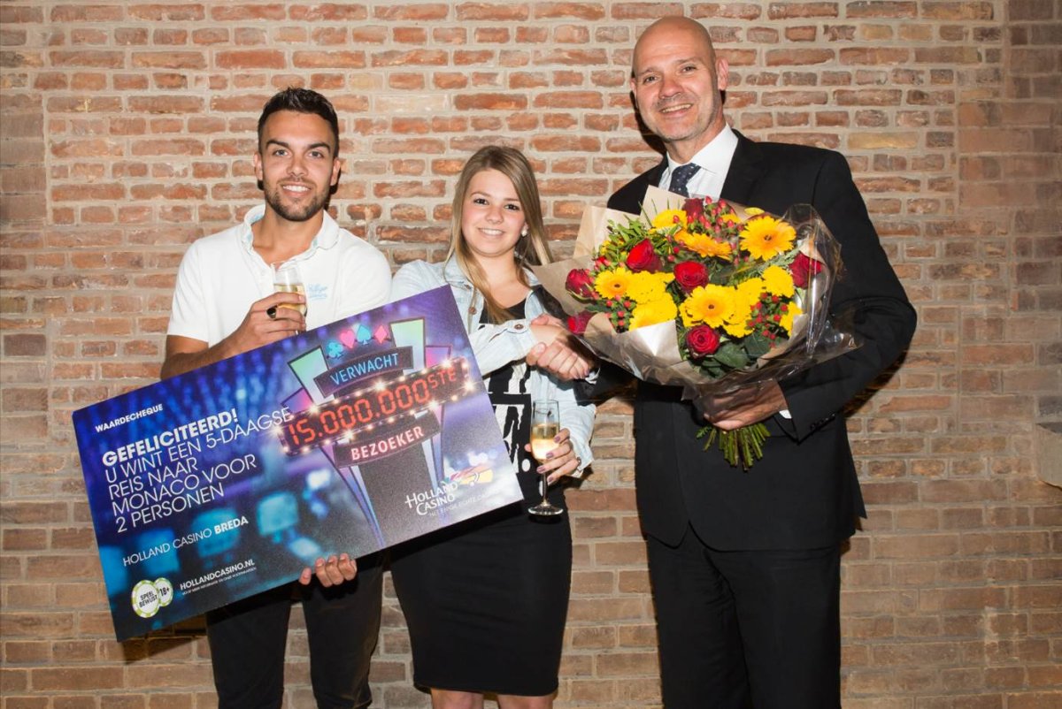 In Holland Casino Breda is vrijdag 30 juni de 15 miljoenste bezoeker feestelijk ontvangen. Uit handen van casinomanager Johan Kamma ontving de gelukkige gast een feestelijke cheque die symbool stond voor een geheel verzorgde 5-daagse reis naar Monaco voor 2 personen.