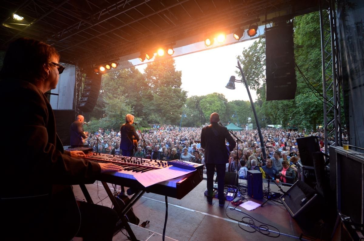 Gisteren was het vijfde van in totaal zeven Palm Parkies concerten in het Valkenbergpark van Breda. Overdag regende het veel, maar gelukkig brak de zon optijd door waardoor alsnog veel mensen het concert bezochten. Er waren ook veel trouwe fans van Frank Boeien. "Mijn eerste concert was van Frank Boeijen" vertelde een trouwe fan vooraan bij het podium.