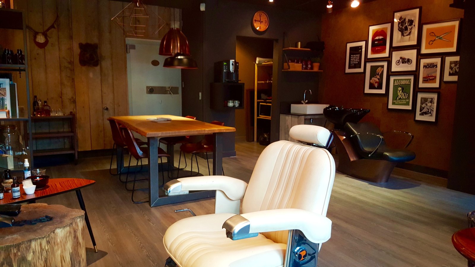 Dit straalt de zaak ook uit, het stoere, robuuste interieur verschilt sterk van de meeste kappers waar zowel mannen als vrouwen komen. De zaak oogt niet zoals de meeste barbiers, je treft er ook  geen jaren 50 interieur maar een moderne look met een enkele knipoog naar het verleden. De sfeer is hedendaags en verwelkomend met een grote tafel waar de man kan plaatsnemen, genieten van koffie of whiskey, een goed boek of een sterk verhaal voor en na de knip of scheerbeurt.