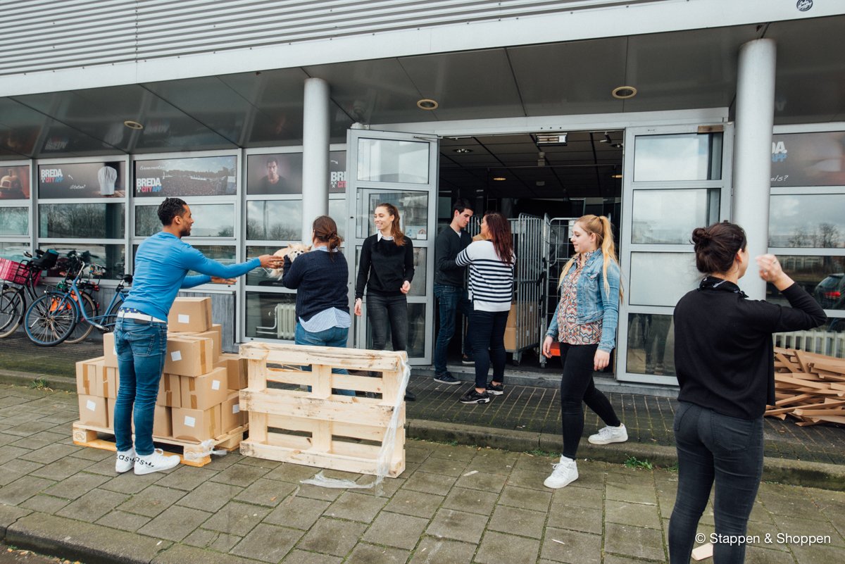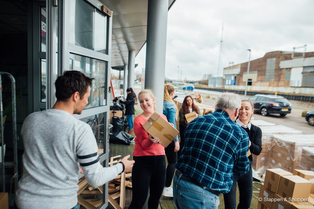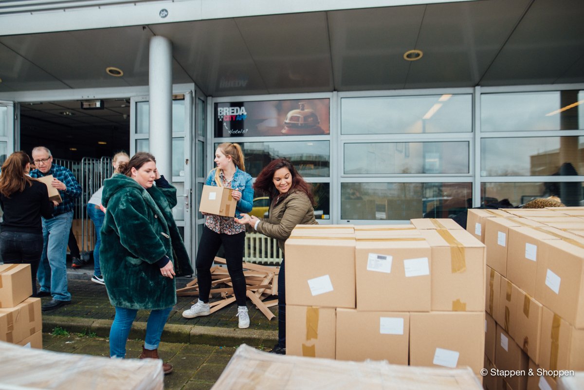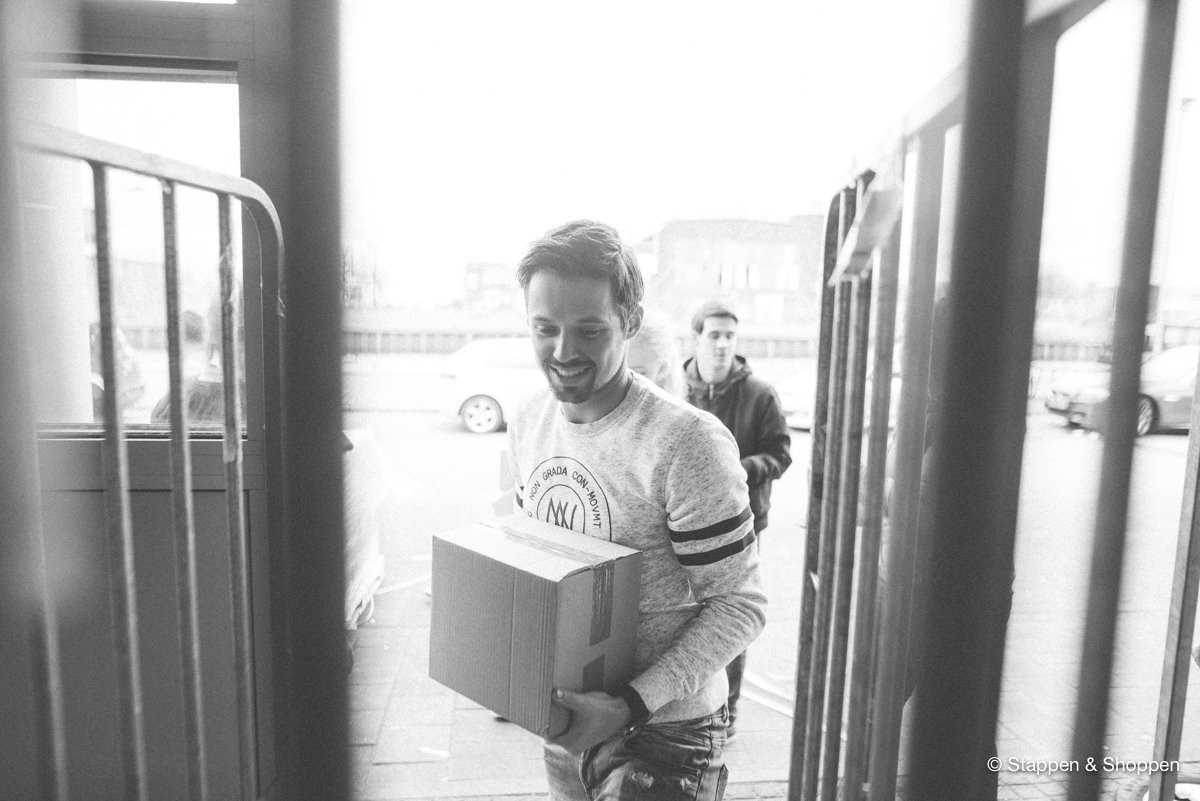 De magazines worden op 18 pallets geleverd en wegen in totaal 15.000 kilo. Elk doosje moeten we met de hand overladen en naar onze opslag achterin het pand brengen. Gelukkig maken vele handen licht werk ;)