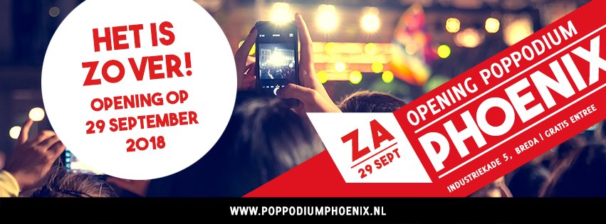 Groot feest op zaterdag 29 september! Poppodium Phoenix (voormalig Popcorner) opent voor publiek en pakt groots uit. Er zullen twee podia gevuld zijn met meer dan 10 bekende bands en meer dan 50 muzikanten uit Breda en omgeving. Heb jij zin in een dagje muziek dan is dit feest echt wat voor jou! Oh ja.. Het is ook nog eens gratis!