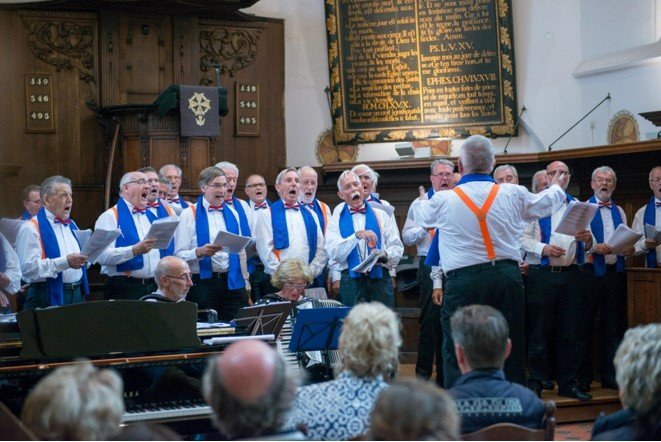 Maar de grijzende zangers zijn ook vaak gepromoveerd tot opa, dus staan ze ook vol trots “M’n Opa” van Annie M.G. Schmidt en Harry Bannink te zingen.