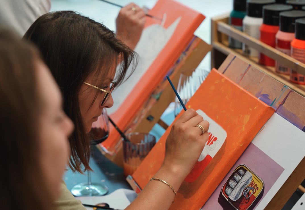 Iedere zondag zijn er schilderworkshops in kleine groepen (max 8 deelnemers). Je kunt kiezen uit een ochtendsessie van 10.00 tot 12.30 uurof een middagsessie van 14.00 tot 16.30 uur. De middagsessie is ook te boeken als Sip & Paint, waarbij je tijdens het schilderen geniet van een glas wijn of een biertje. Alle materialen zijn inbegrepen en je neemt je schilderij na afloop direct mee naar huis.